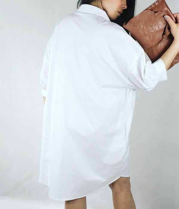 Made from crisp organic cotton, this shirt dress is a oversized fit with a button-up front. A short-sleeved silhouette, it has discreet side-seam pockets and it is finished with neat, single topstitching at the edges.