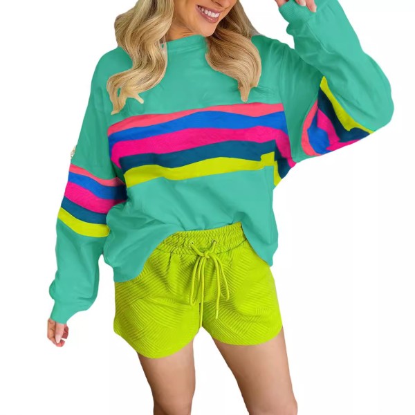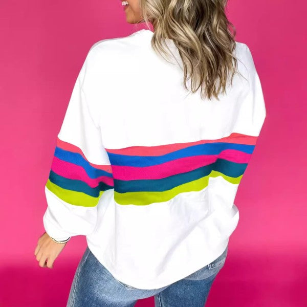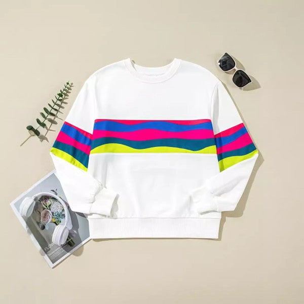 Colorful Striped Accent Long Sleeve Sweatshirts
