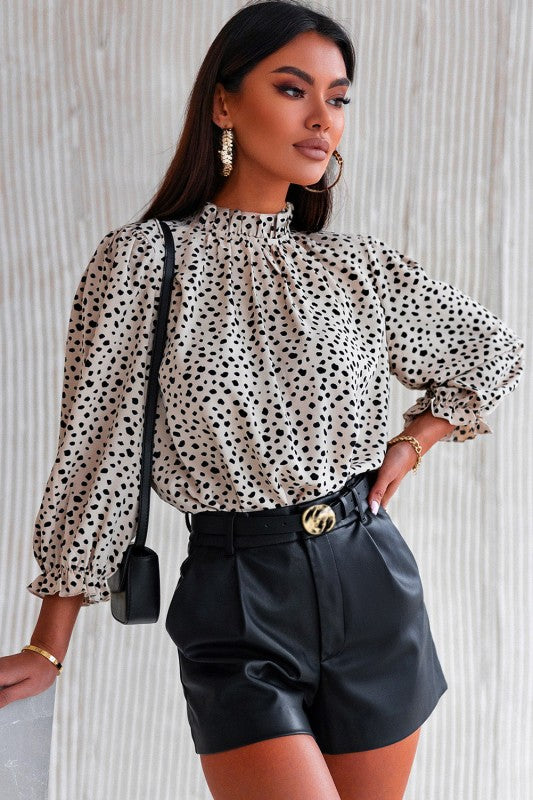 Unleash your wild side with this chic Sienna Cheetah Blouse! Featuring a fun cheetah print, this top has a frilled neck, 3/4 sleeves, and a relaxed fit that's perfect for any occasion. Made with light, sleek fabric, this blouse is cozy enough to wear all day long. Pair it with pants or skirts to create a versatile and stylish look.